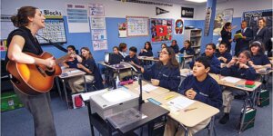 Một lớp tại Học viện Excel ở East Boston, trong dịp Thống đốc Deval Patrick viếng thăm năm 2009 (đứng trong số những người quan sát ở phía sau). (Ảnh …